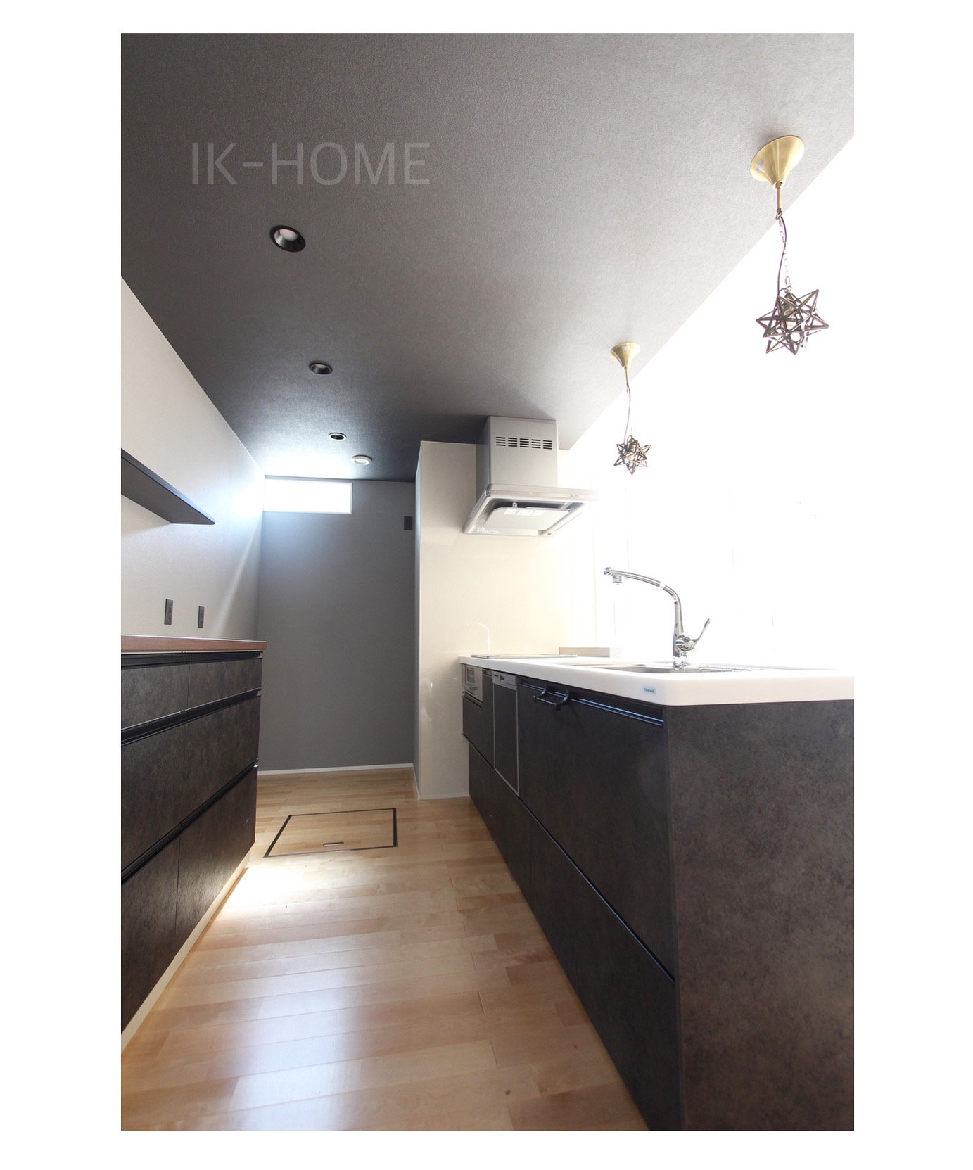 スタイリッシュなキッチンと、奥様のワークスペースの確保とファミリークローゼット。